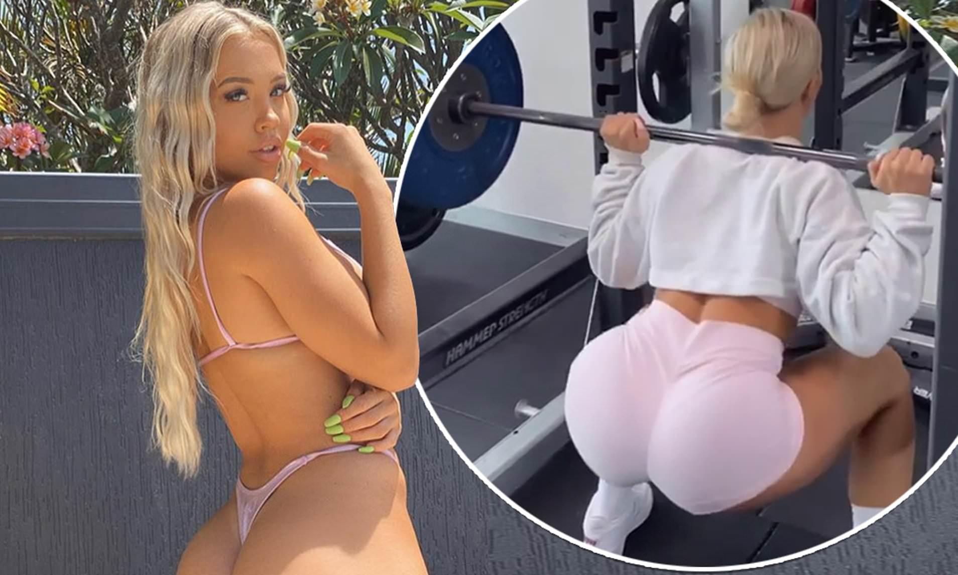 Fitness babe in a thong